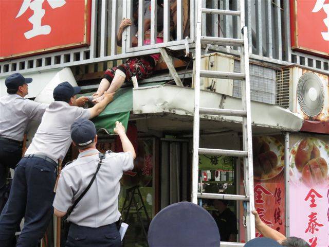 對於市公所的拆除行動,仍有部分溝上人家不願意配合,還是出現零星的抗議事件,有位阿嬤神情氣憤的想跳樓,還好員警機警將她攔下,上了年紀的她最後被送往醫院,阿嬤叫著,今天救我,明日再跳。