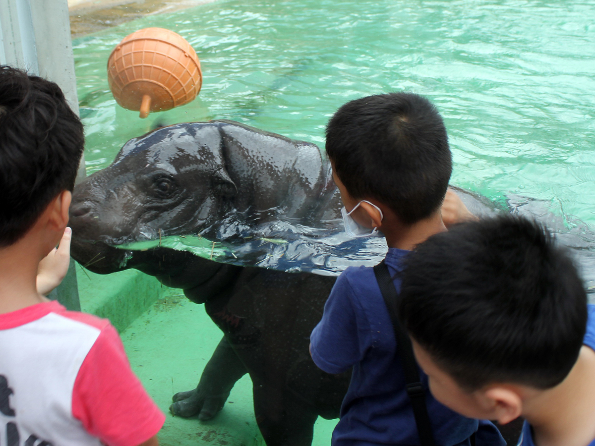 此外,壽山動物園侏儒河馬館於4月10日開幕後,公河馬「秋吉」圓滾的身形、短而靈活的耳朵及呆萌的眼神吸引不少遊客入園參觀;另一隻母河馬「春圓」也將於近日完成檢疫程序,5月1日就會正式與大家見面,民眾可透過整面大落地窗,近距離觀賞這一對真實版「嚕嚕米」在水中爬行、翻轉的可愛畫面,幸運的話,還能看到牠們在水中睡覺或是排遺的有趣行為唷!