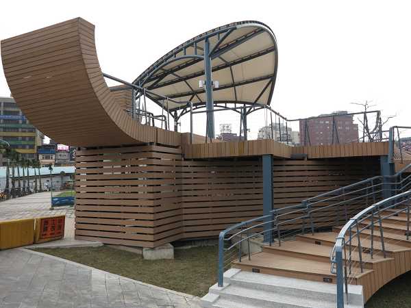 平台上設置遮雨、遮陽挑高棚架,俾利遊客休憩、觀景,工區內植栽(喬木)以山櫻花、蒲葵、楓香為主,搭配草皮為輔,整體以簡單、大方、設施減量為規劃基準,並與海洋廣場相呼應,完工後串連海廣一期,讓港區環岸呈現全新水岸面貌。