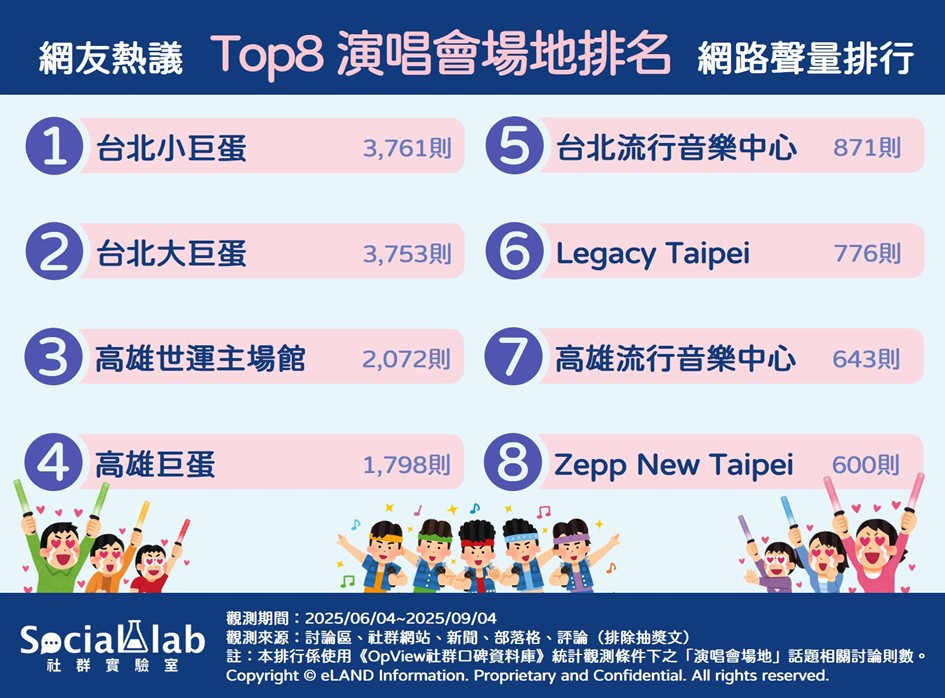 在近三個月的「演唱會場地」討論中,位於北部的大型場館佔據了主要聲量: