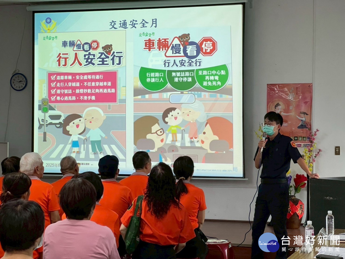 海山警分局針對行人與駕駛人常見的交通行為進行講解,提醒民眾行走時務必走行人穿越道,切勿任意穿越馬路,以利駕駛人預先辨識行人動向,降低事故風險。同時,駕駛人在轉彎或變換車道前,也應確實使用方向燈,提醒其他用路人,避免因未預警而造成交通危險。