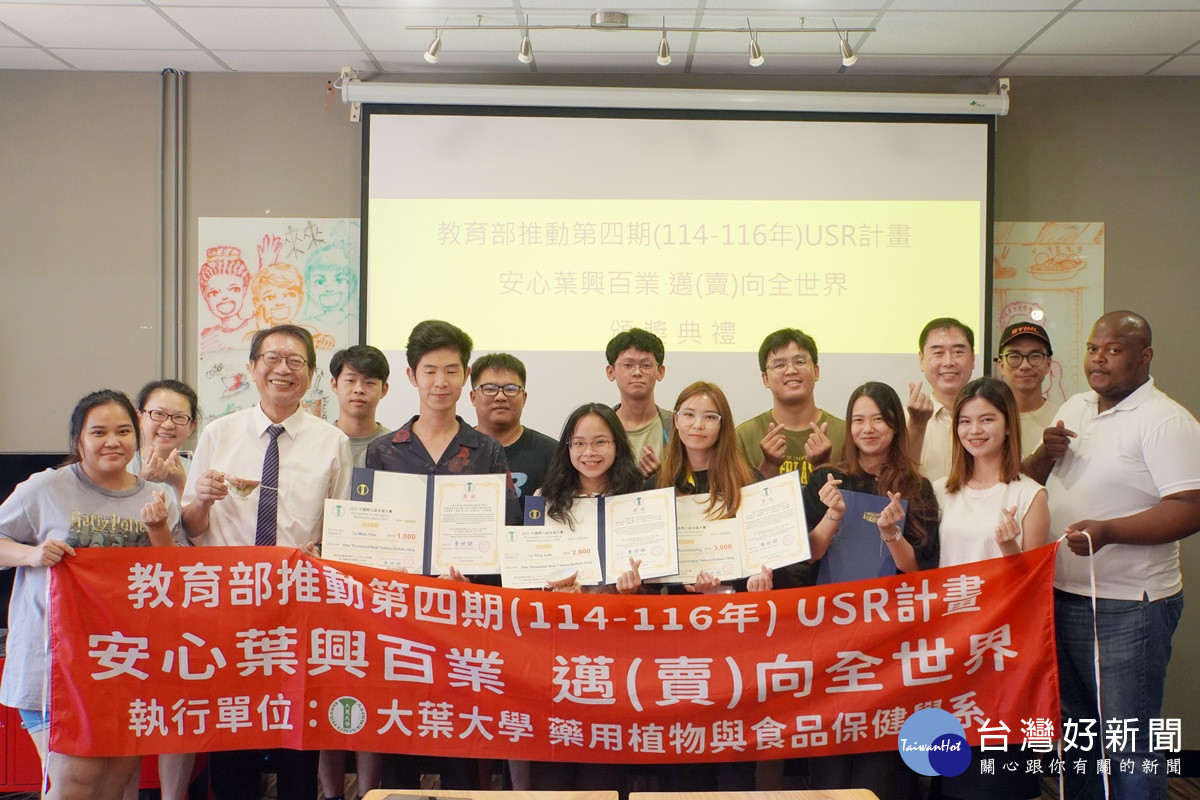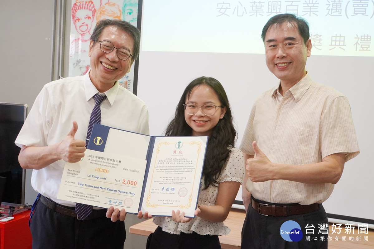大葉大學USR計畫「安心葉興百業 邁(賣)向全世界」辦理「臺灣好茶全球通:2025國際行銷卓越大賽」,鼓勵學生提出創新且具執行力的國際行銷策略,助力台灣茶產業進軍全球市場,10月1日頒獎,蒙古學生Batdorj Buyankhishig榮獲冠軍,越南學生Le Thuy Linh獲頒亞軍。