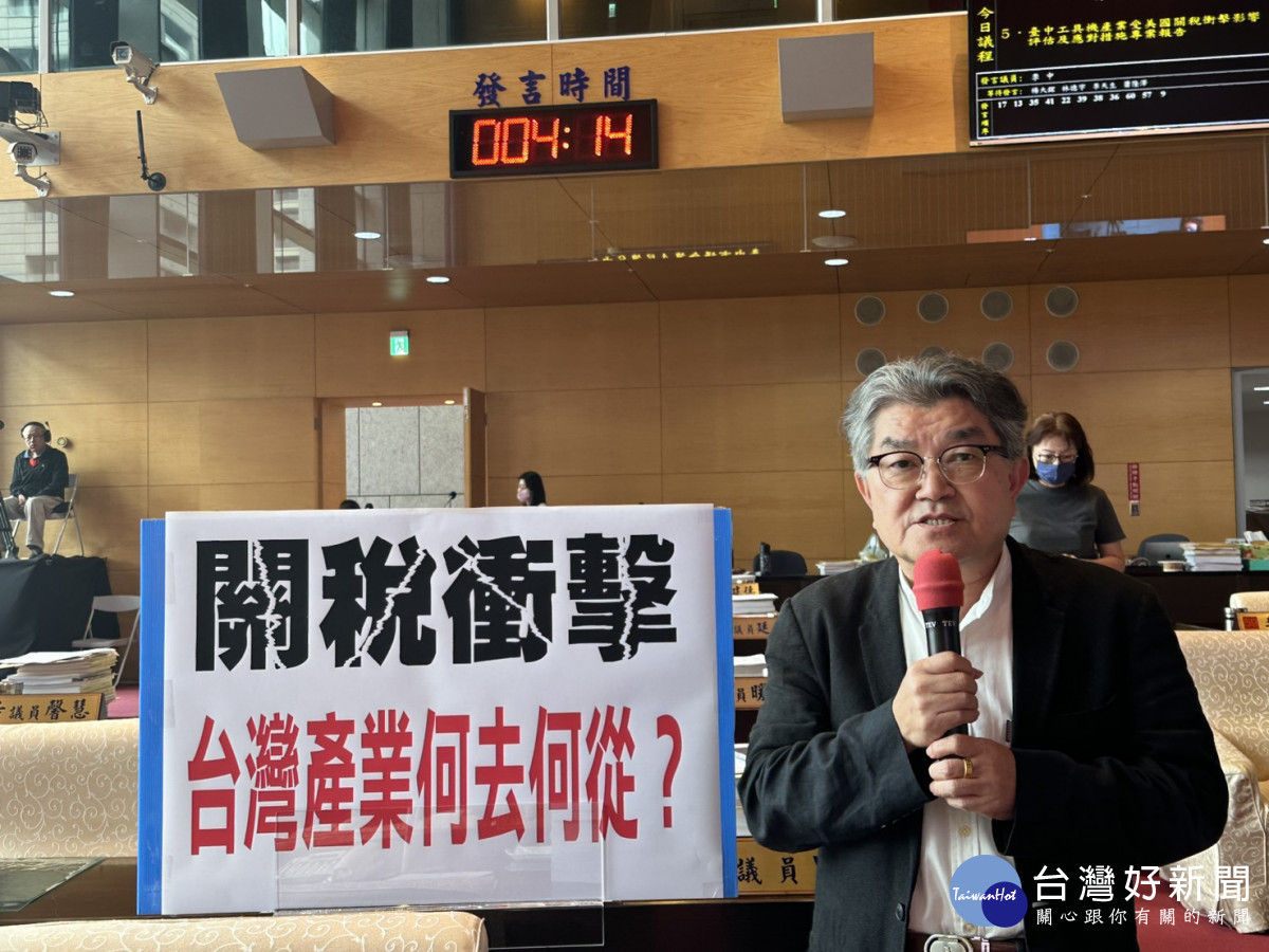台中市議會定期大會專案報告,市議員李中關切台灣工具機產業受美國關稅衝擊影響,李中表示,美國利用實施對等關稅,希望讓美國再工業化,原本鎖定晶片大廠台積電,現在竟想搬走台灣產業鏈,這是很危險的事。市長盧秀燕也呼籲,台中市是產業園區重地,若廠商被搬光光會相當麻煩,政府應該慎重。