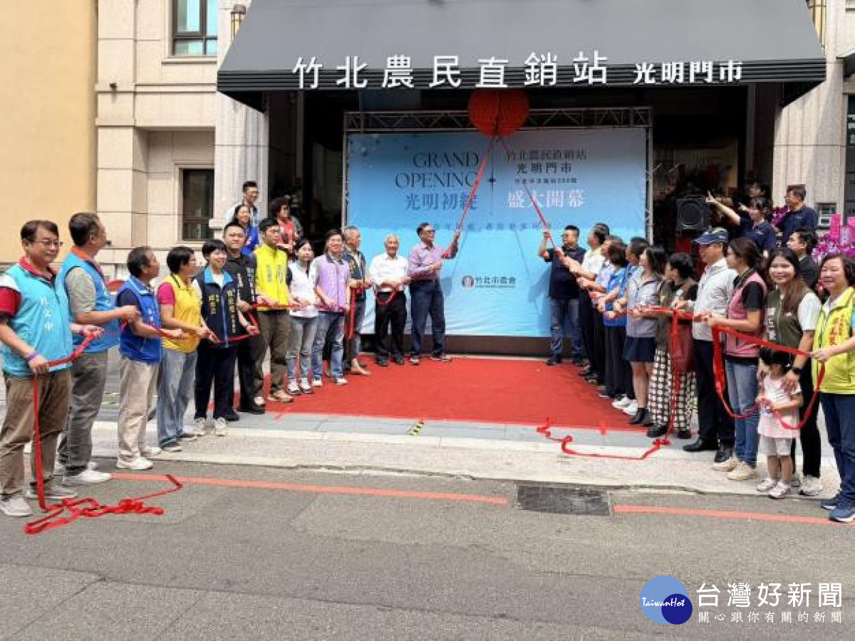 為擴展農產品多元行銷通路,新竹縣竹北市農會在光明商圈成立第3個農產品銷售據點「竹北市農民直銷站光明門市」,3日隆重開幕,成為新竹縣政府輔導成立的第17個農產品銷售據點,提供農友自產自銷的行銷通路,降低農民生產成本。