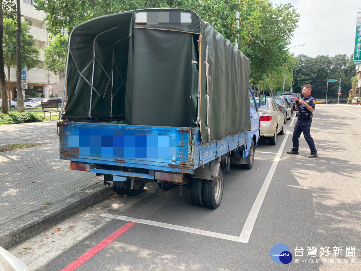 為打擊不法「無牌車」久占路邊車格,台中市政府針對全市啟動巡查拖吊作業,其中北區民權路一處停車格,遭無牌照貨車非法占用,市府交通局停車收費員10月4日發現後,隨即通報台中市警局,由交通警察大隊立刻調派員警及拖吊車,2小時內將車輛拖離,後續也將追查車主是否有未懸掛號牌上路情形,最高可處3萬6,000元罰鍰。