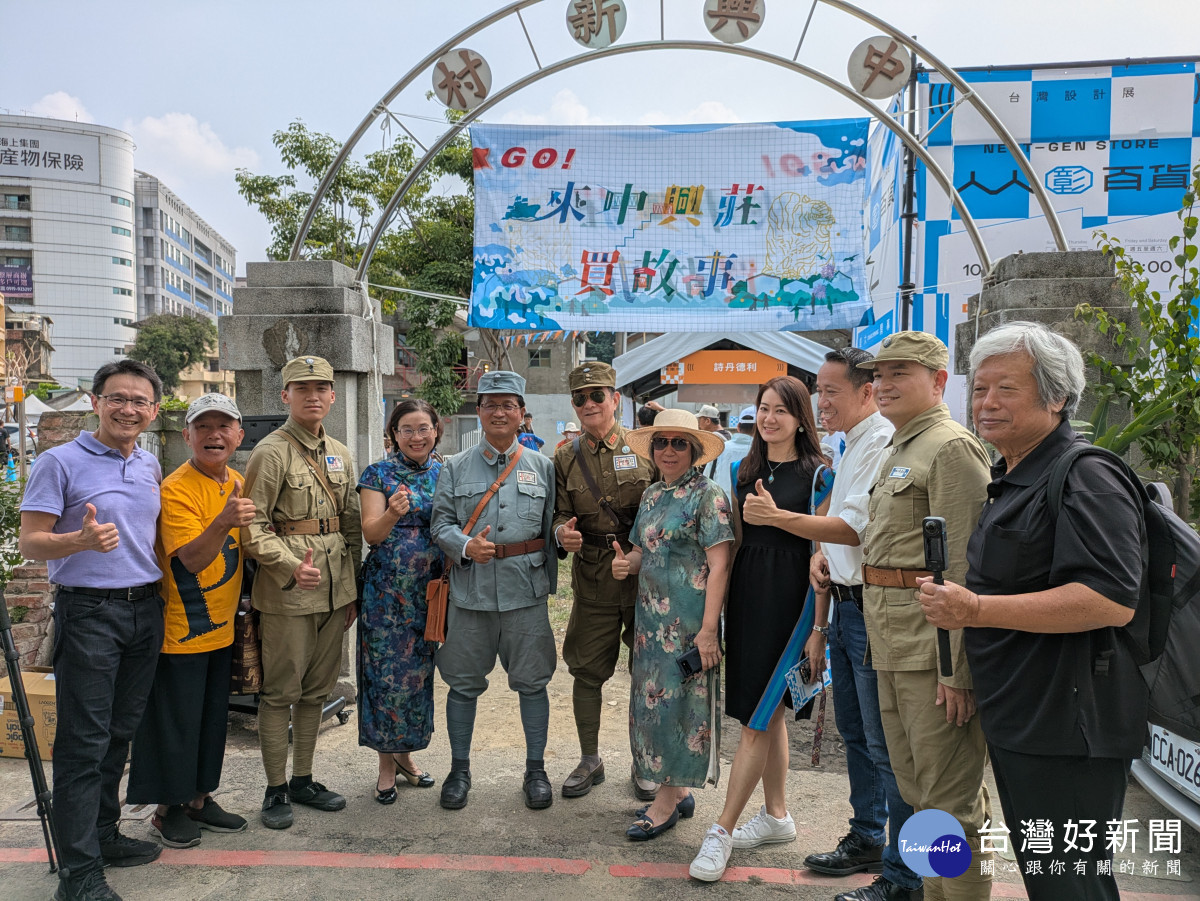 林世賢市長偕同中興莊眷村人文協進會理事長高華國(右六)共同主持中興莊行動博物館。圖/記者鄧富珍翻攝