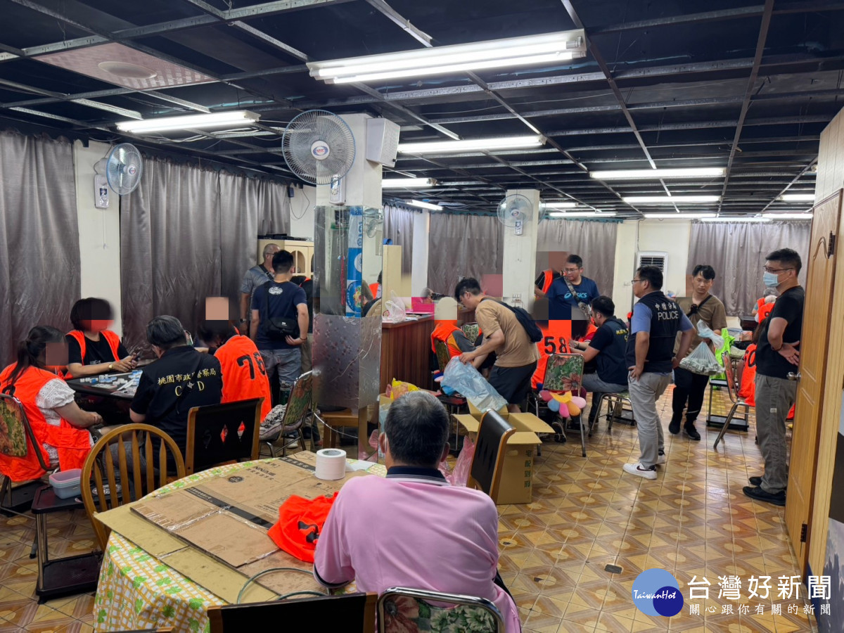 中壢警分局持續加強連假前治安維護,於9日14時40分,持搜索票出動優勢警力前往中壢區華勛街一處民宅內查緝麻將職業賭場,現場查獲正在聚賭的男、女賭客及工作人員共60人,其中邱姓男子高達81歲。