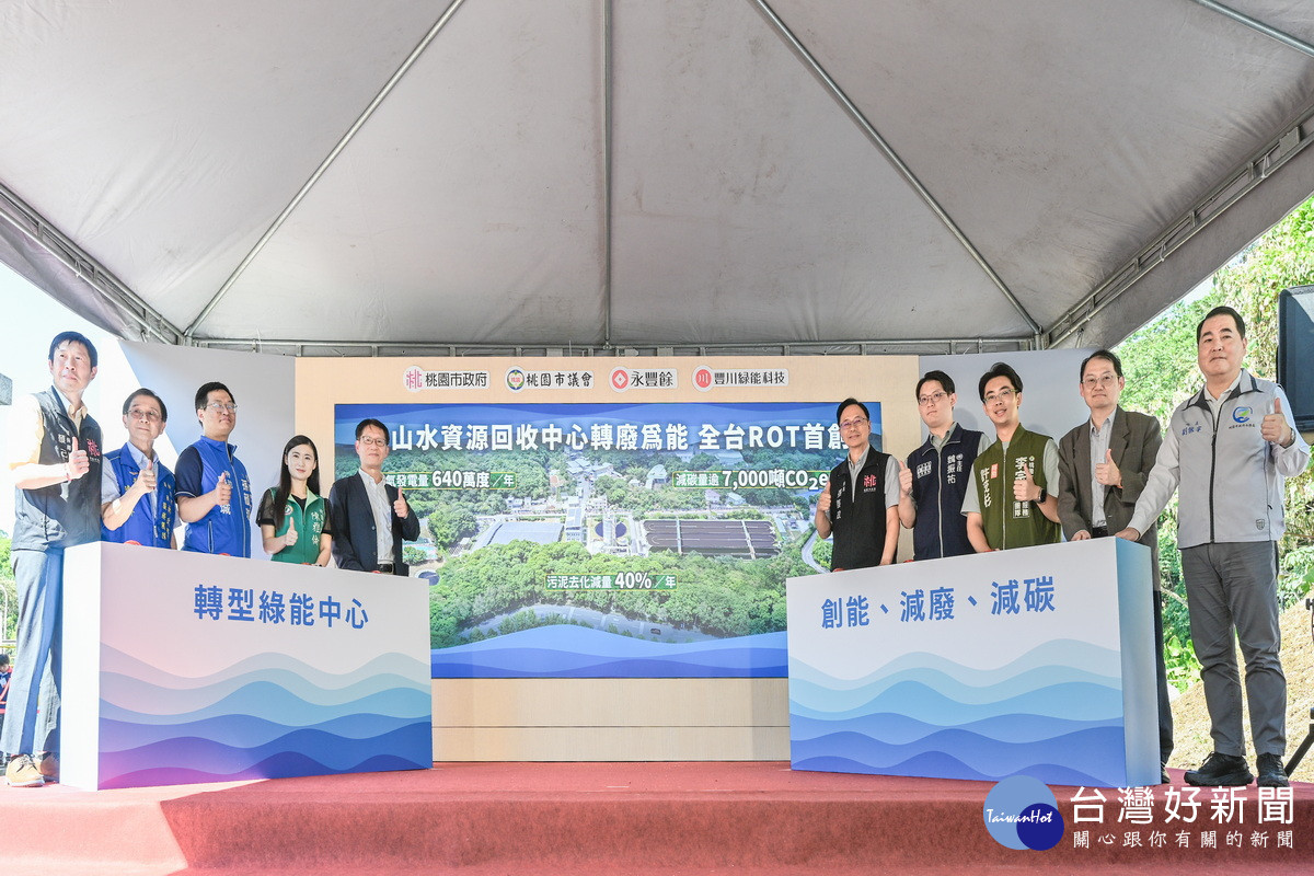 桃園市政府與永豐餘集團旗下豐川綠能科技15日共同宣布,全台首座以 ROT(民間興建營運後轉移)促參模式轉型的綠能水資源回收中心~「龜山水資源回收中心」正式啟用沼氣發電系統,成為全國循環經濟與綠能轉型的指標案例。桃園市長張善政親自出席主持啟用儀式。