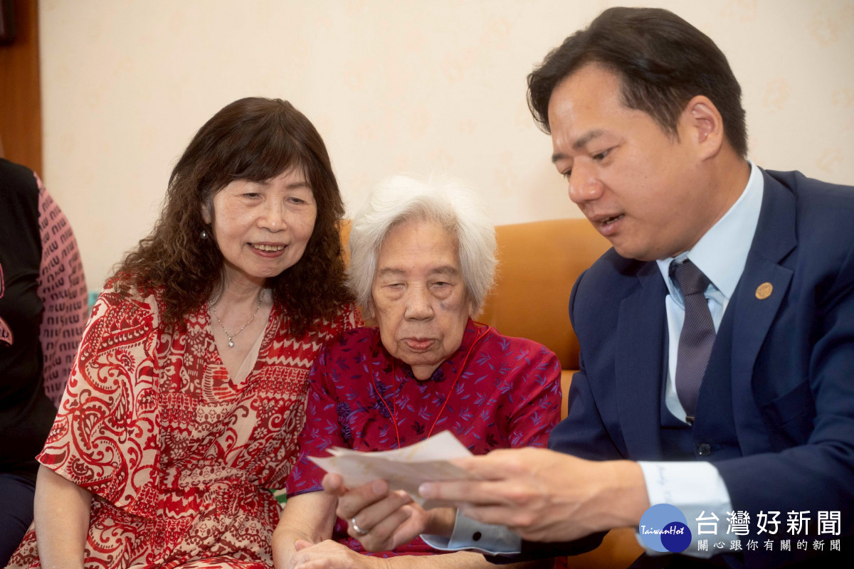 一年一度的重陽節即將到來,代理市長邱臣遠16日前往百歲人瑞羅書惠奶奶府上致賀,親自獻上竹市重陽禮金與賀禮,並代為轉交總統府敬老狀及衛生福利部金鎖片,向羅奶奶表達最誠摯的祝福。邱代理市長也與羅奶奶親切話家常,現場氣氛溫馨熱鬧,洋溢著敬老與感恩的節慶氛圍。