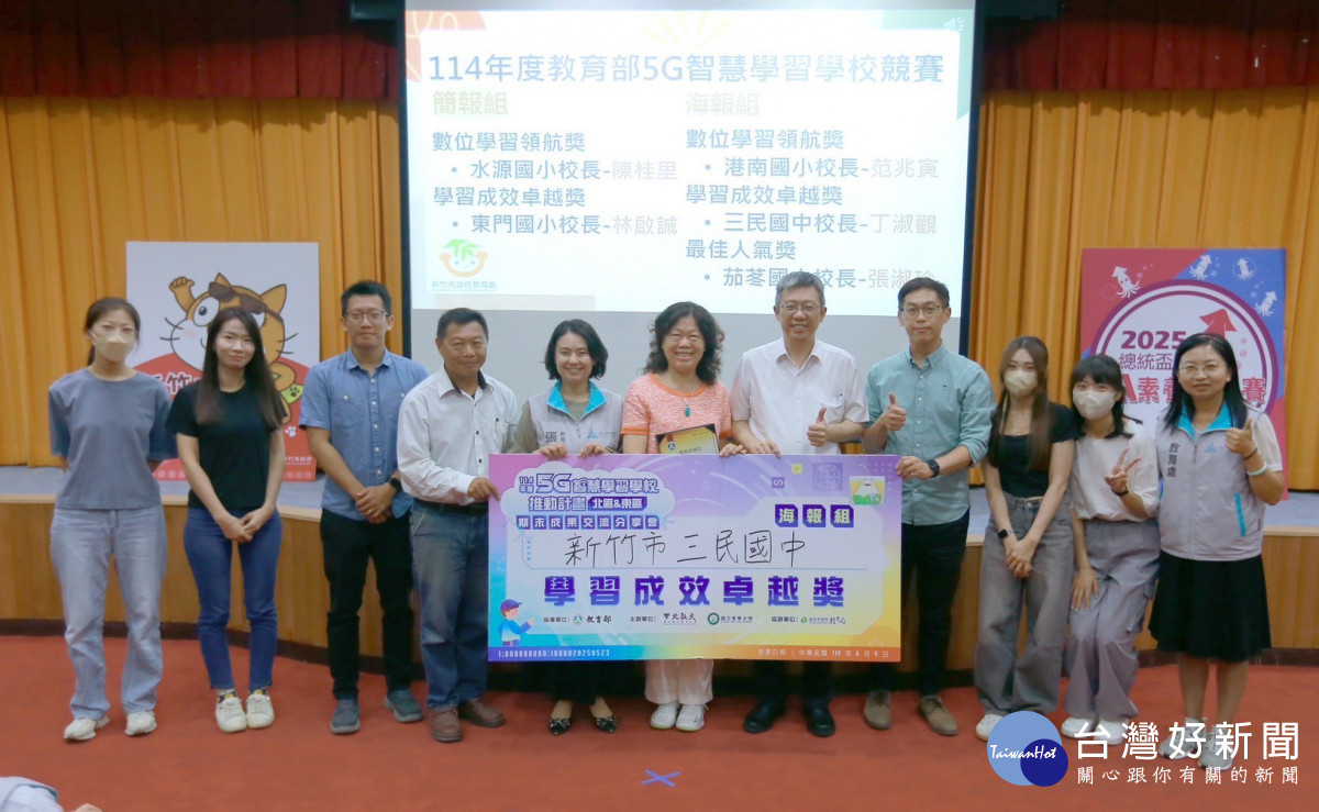 會議中,代理處長張品珊頒發教育部智慧數位優良推動與競賽獲獎學校,包括教育部手把手數位翻轉-新竹好學AI精靈團前導示範學校績優獎-西門國小校長許慶恭、114年度教育部5G新科技學習示範學校競賽教學實踐獎、全勤優秀獎、回饋模範獎-青草湖國小校長周雯娟、113年度教育部「中小學校AI人工智慧教育計畫」績優學校優等-載熙國小校長莊傑志、114年度教育部5G智慧學習學校競賽簡報組數位學習領航獎-水源國小校長陳桂里;簡報組學習成效卓越獎-東門國小校長林啟誠;海報組數位學習領航獎-港南國小校長范兆寅、海報組學習成效卓越獎-三民國中校長丁淑觀、海報組最佳人氣獎-茄苳國小校長張淑玲。