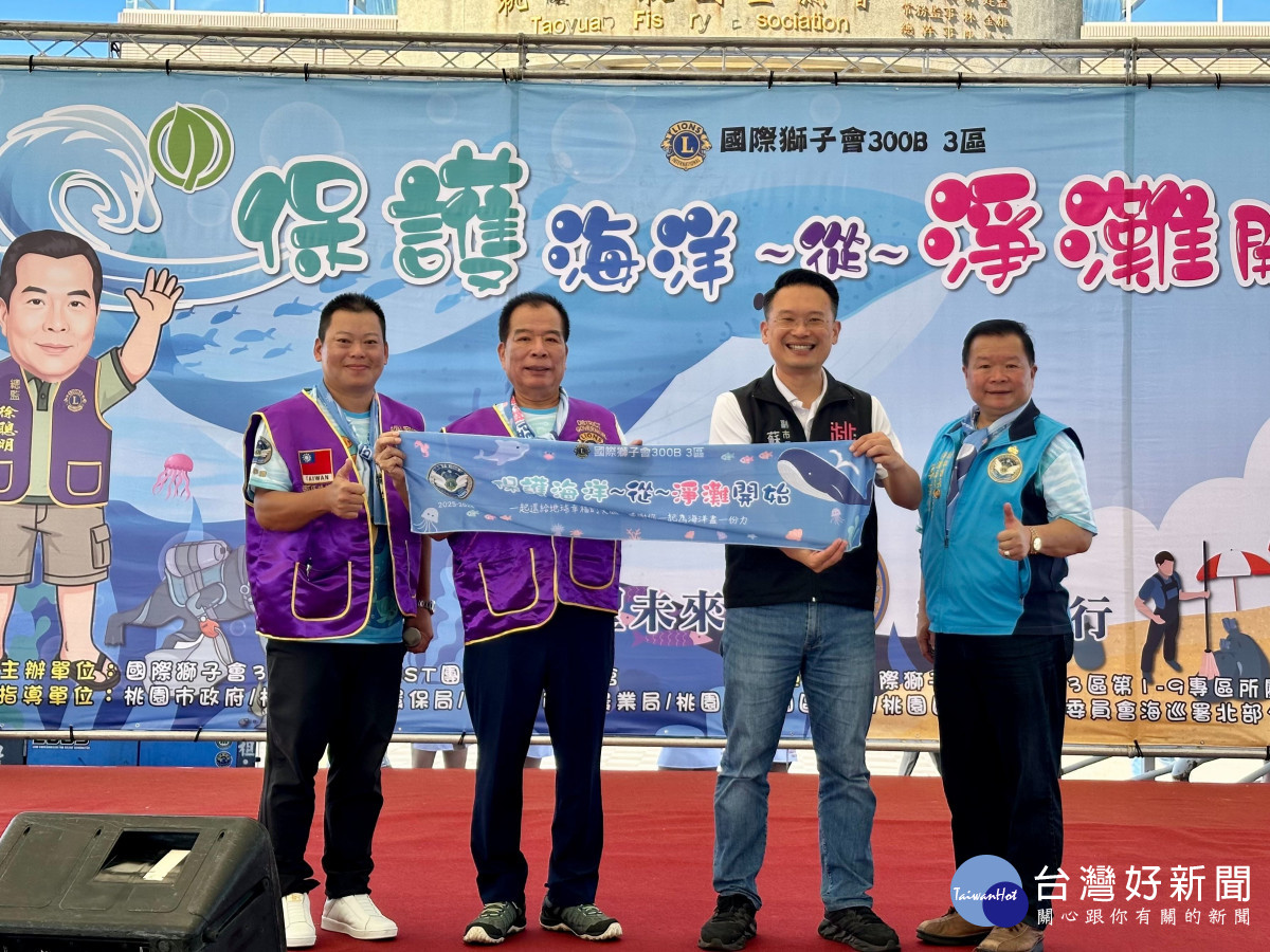 桃園市副市長蘇俊賓18日上午前往大園竹圍漁港,出席「國際獅子會300B3區千人淨灘活動」,蘇俊賓表示,桃園市海岸線長達51公里,市府這兩年多來積極推動淨灘活動,目前已經清除海廢超過1,200公噸,海灘整體潔淨度大幅提升。市府也持續推動廢棄物循環再利用,撿回來的浮球、塑膠瓶等,也能成為循環經濟的一環,甚至未來以海廢再生材料製作淨灘志工服裝,展現環保創新精神。