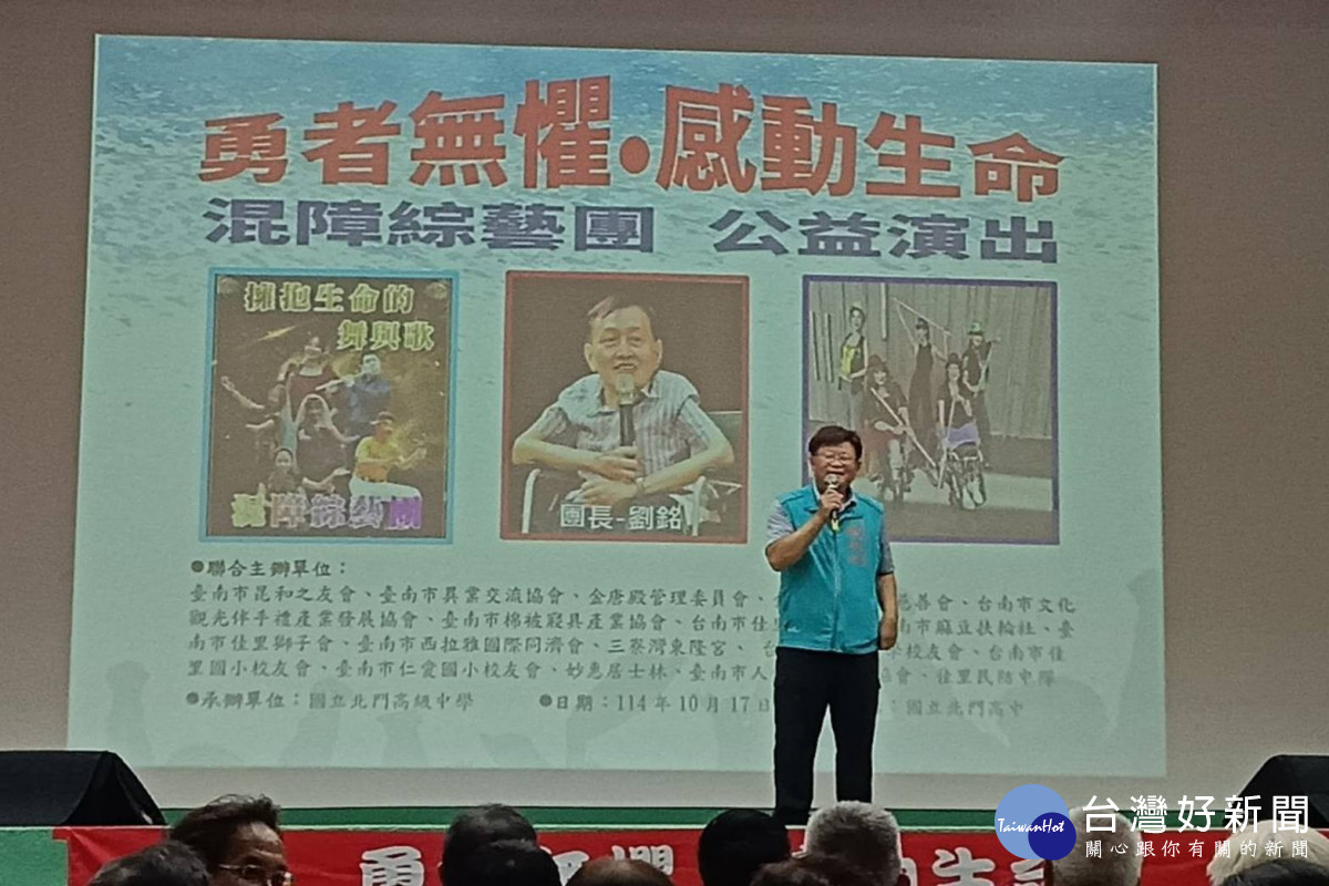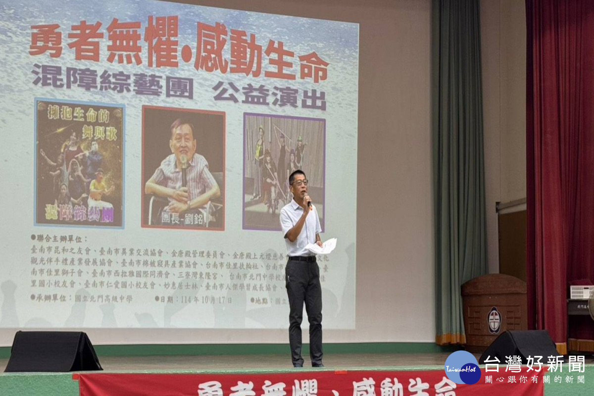 以社會公益為主旨成立的台南市昆和之友會,為支持殘障團體混障綜藝團走上舞台展現生命力,結合17個社團於國立北門高中大禮堂,共同主辦勇者無懼.感動生命活動。團員們不向命運低頭、勇於跨越障礙、樂觀面對人生的演出,贏得1000多位現場師生、民眾熱情的掌聲。北門高中校長吳俊憲表示,表演活動啟發觀賞者向上的動力及能量,是一堂深具啟發性的生命教育課程。