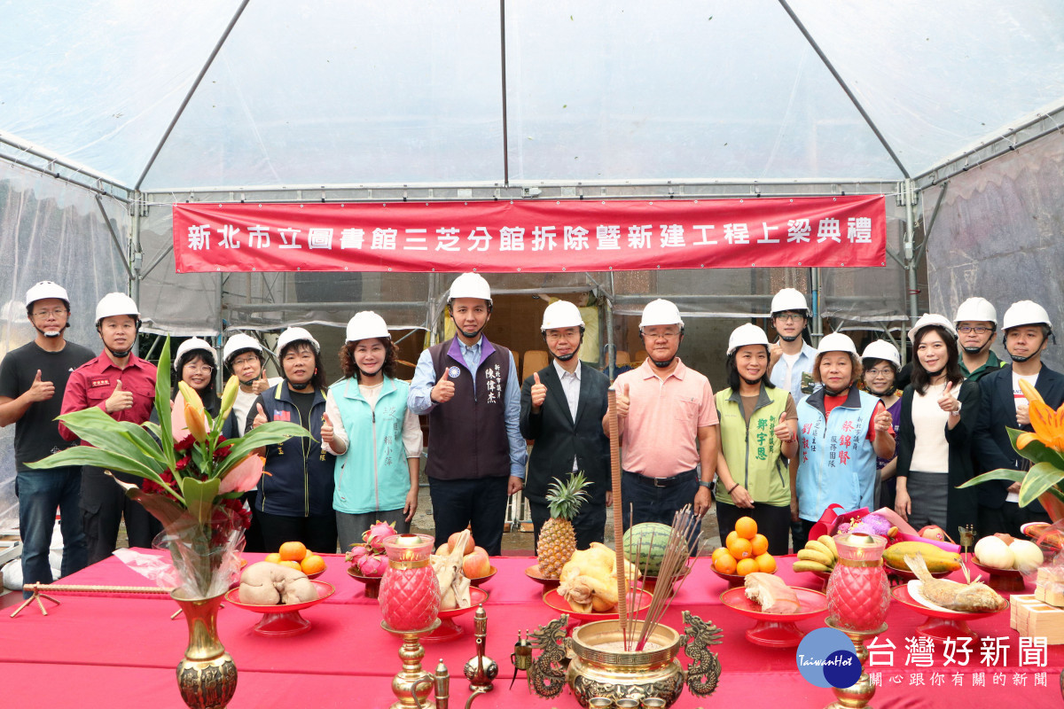 新北市立圖書館三芝分館重建工程去年8月開工動土後,整體工程穩定推進,今(20)日舉行上梁儀式,象徵工程進度邁入新的里程碑,同時期許三芝分館順利完工後,未來不僅服務學校和社區,更成為北海岸地區全齡友善的閱讀新據點。