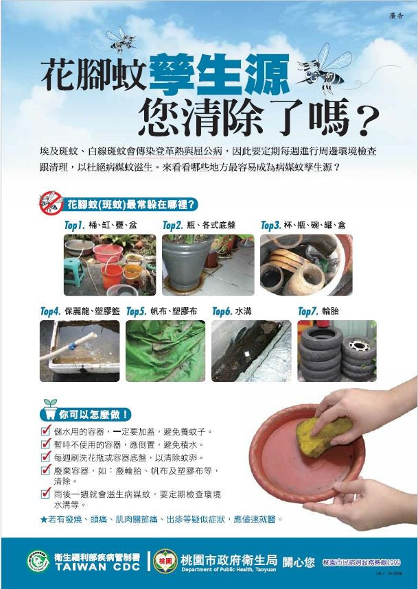 桃市府籲雨後落實「巡倒清刷」防登革熱。