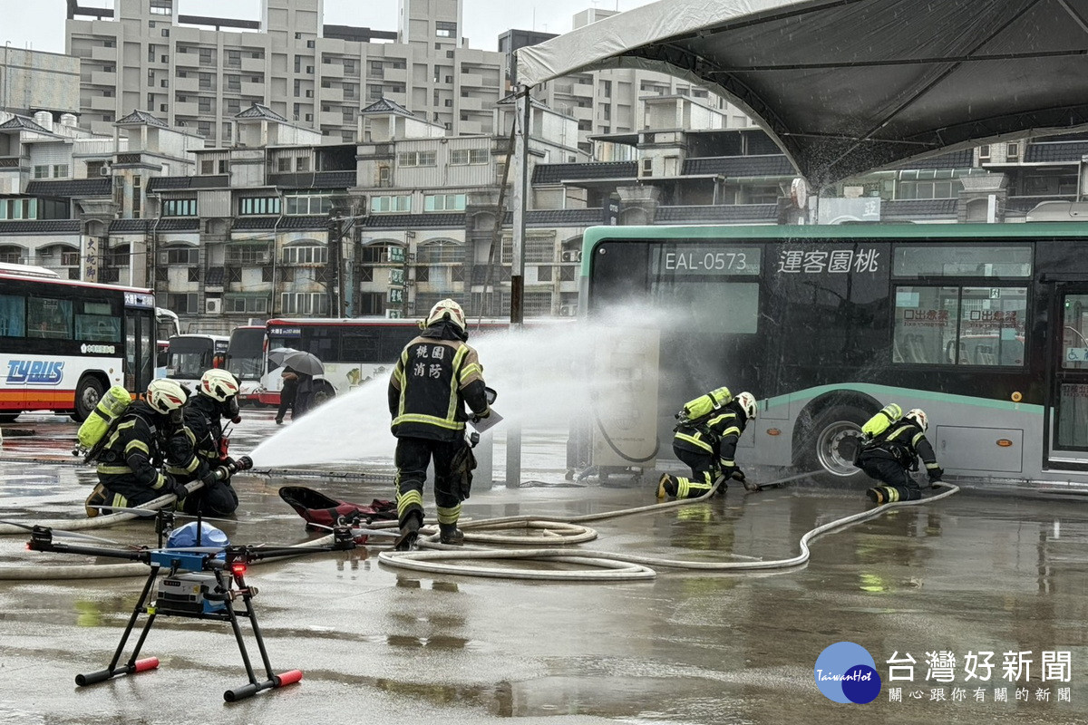桃市府跨局處攜手客運公司強化乘車安全 電動公車消防應變演練登場