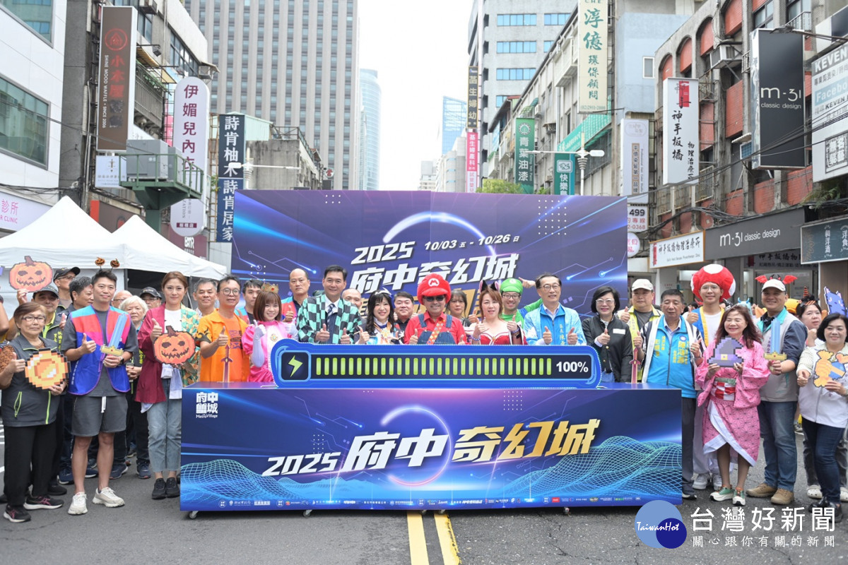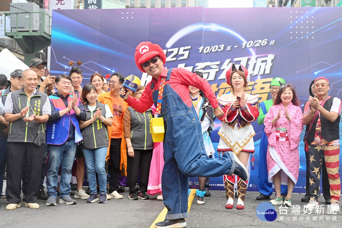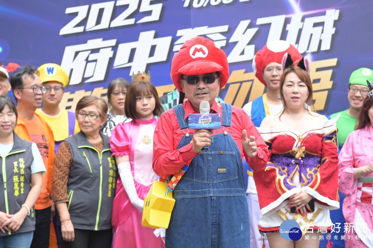 2025府中奇幻城壓軸活動「府中搞什麼鬼」今(25)日熱鬧登場,吸引大批民眾變裝共襄盛舉。市長侯友宜化身為瑪利歐,帶領大小朋友一同登入電玩奇幻世界,展開萬聖節限定冒險。活動包含萬聖踩街遊行、變裝比賽、實境解謎、集章任務、討糖活動、搞怪市集及舞台表演等豐富內容。