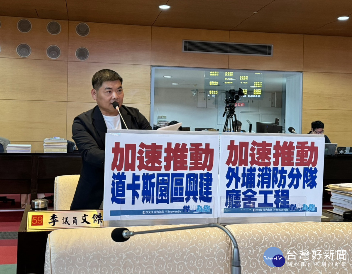 市議員李文傑說,盧秀燕市長在上次定期大會回答他的詢問時強調,台中市警局大甲分局重建案命名為「道卡斯園區」,這是大甲區十多年來最大的開發案,市府會盡快推動。警察局在本會期業務工作報告中也提到,整合大甲分局、大甲地政事務所及公托的聯合辦公大樓「道卡斯綜合服務園區」目前工程委託規畫設計技術服務於今年8月已經決標,警察局應該加快腳步進行,地下停車場也希望警察局妥善規劃建置,一併紓解大甲市區停車位嚴重不足的問題。此外,李文傑也表示,外埔消防分隊廳舍屋齡老舊,且過去長久以來都與戶政事務所、警察局外埔分駐所三個單位共用,空間相當狹小,民眾洽公的品質不好。希望市府盡速推動外埔消防分隊新的廳舍新建工程,也提升消防救災量能。