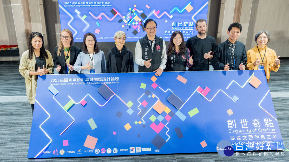 桃園市長張善政1日上午前往桃園會展中心,出席「2025桃園青年設計展暨國際設計論壇」。張市長表示,市府於110年成立桃園設計庫,並於去(113)年成立桃園城市創意設計中心,致力將典雅設計及優良創意融入城市地景。桃園青年設計展暨國際設計論壇舉辦至今已邁入第2年,透過展出作品、邀請專家及國際學者進行演講,盼能藉此激發更多年輕人的創意思考與創新設計,並進一步應用於城市治理,使桃園市容更添典雅與美感。