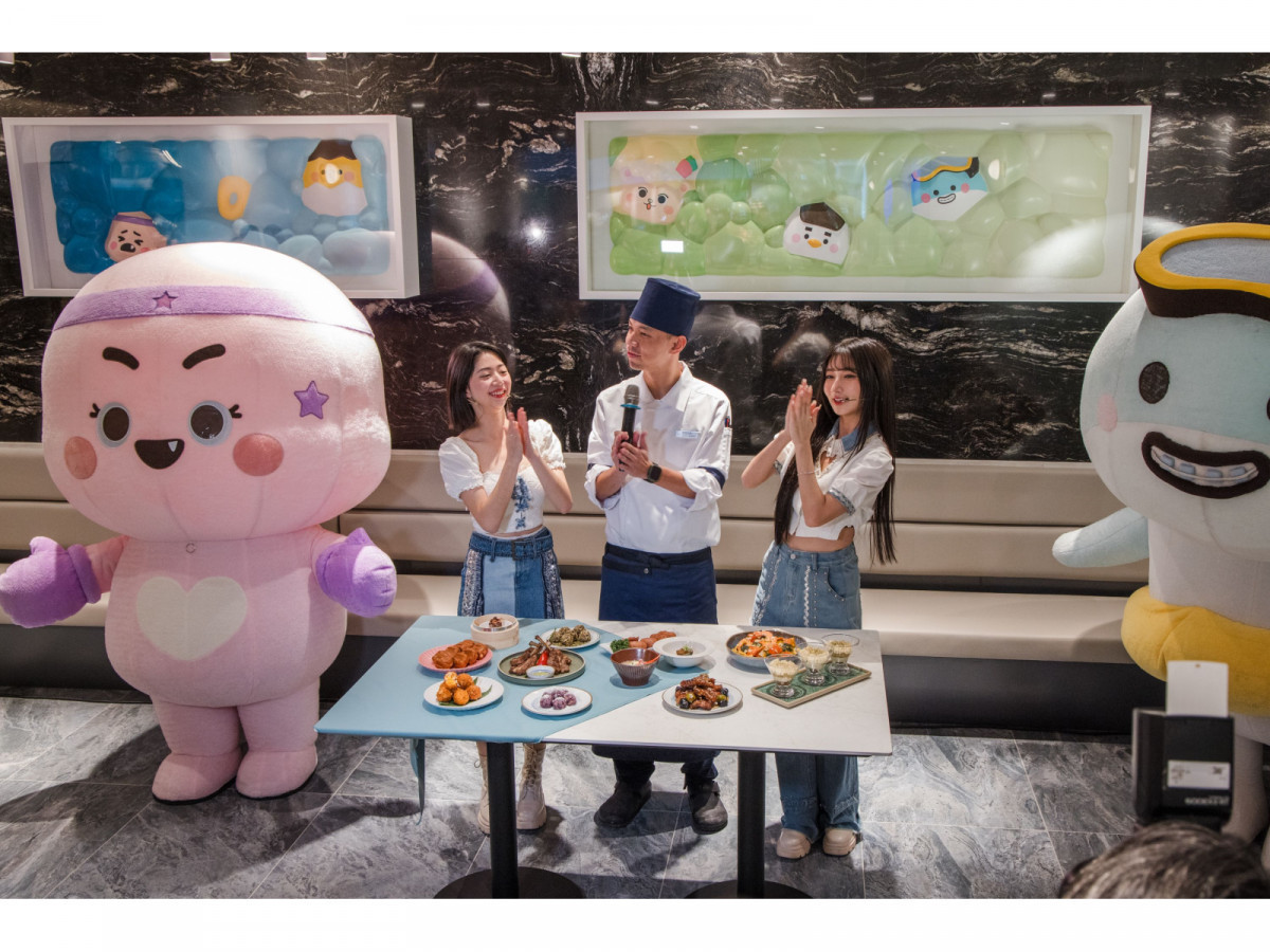 開幕當天,人氣爆棚的WING STARS台鋼雄鷹啦啦隊女神「一粒」與「妡0」化身一日店長,活力四射的舞蹈瞬間點燃現場氣氛,彷彿整個餐廳都在跟著節拍跳動。「一粒」與「妡0」更攜手主廚演繹「饗食天堂十二饗宴秀」,將12道限定料理逐一呈現,每一道都像藝術品般誘惑著味蕾。
