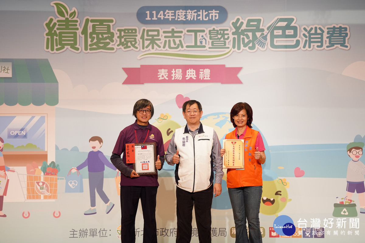 新北市環保局昨(5)日舉辦「114年度新北市績優環保志工暨綠色消費表揚典禮」,共計表揚301個環保典範,包含3個績優民間團體、292位績優環保志工,以及6處績優環保福利社,肯定他們長期投入環境保護與推廣綠色生活的付出,展現實踐綠生活的努力與成果。