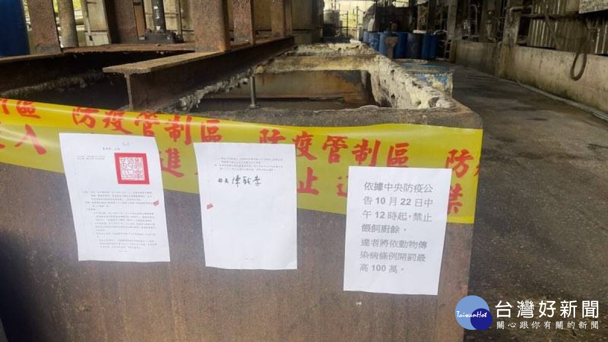 非洲豬瘟疫情防範不可鬆懈,動保處6日徹夜查察林口豬場廚餘禁餵狀況,於清晨4點多發現廚餘車輛載有廚餘桶停置場外,且廚餘車上裝有28桶廚餘,經開蓋逐一檢視,違規事證明確。緊連旁邊養豬場其蒸煮樔亦裝滿未蒸煮廚餘,以及4桶動物性廚油,場主及環保局人員目測樔內至少有100桶份量。