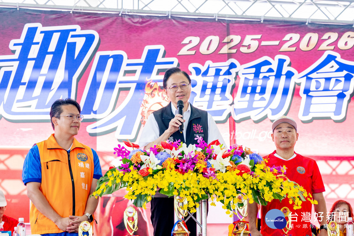 張善政指出,獅子會成員皆在各行各業有卓越成就,更以實際行動回饋社會、推動公益,在歷任總監帶領下,長期支持市府各項公益活動,展現獅友熱心助人的精神。市府感謝所有獅友的熱情奉獻,讓桃園成為更溫暖、有愛的城市,也祝本次運動會順利成功、獅友情誼更加緊密。