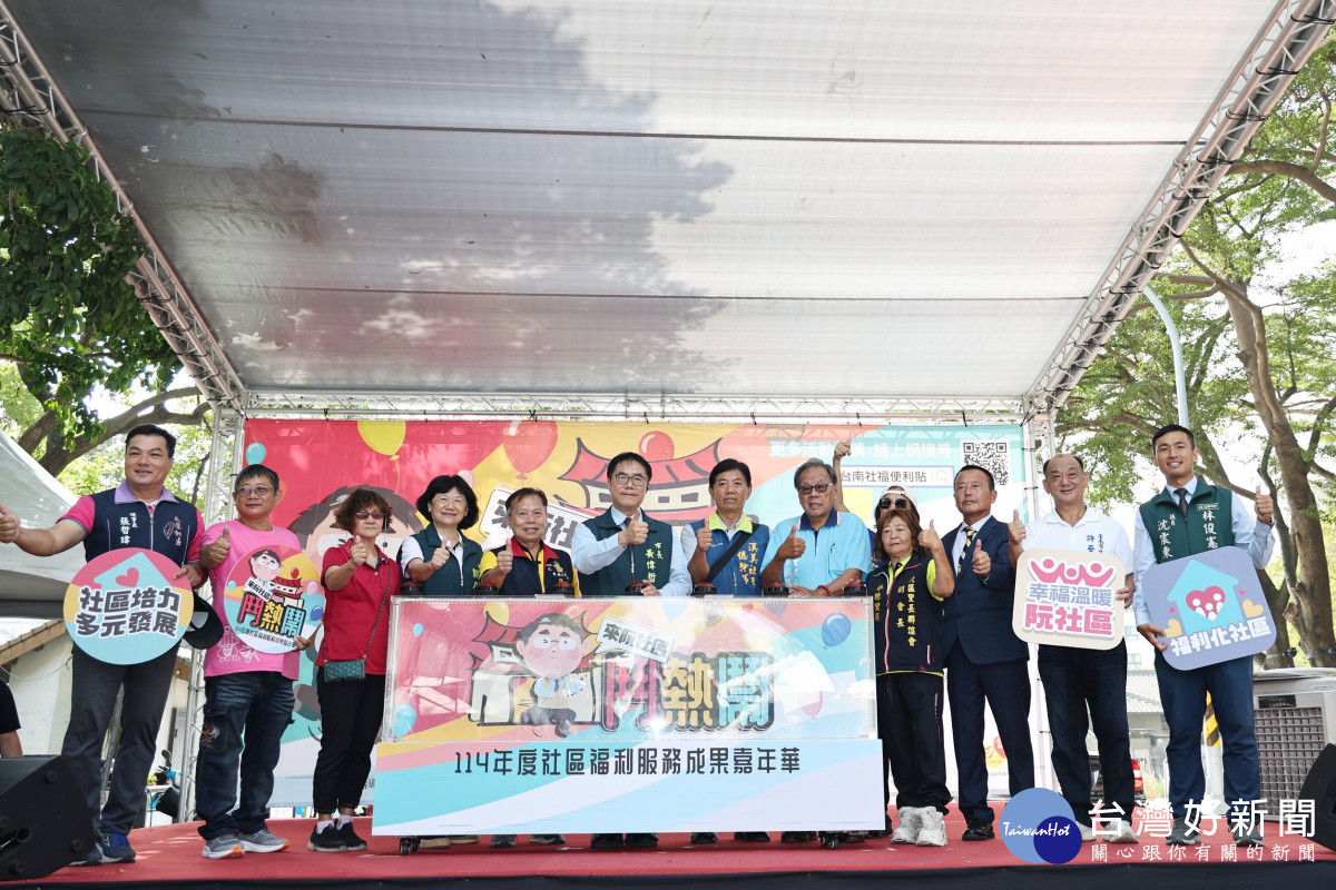 台南市政府社會局今(9)日上午在水交社文化園區舉辦「來阮社區鬥熱鬧-114年社區福利服務成果嘉年華」,邀集全市各區社區發展協會與社福團體共展年度成果,現場透過互動體驗、手作DIY、展演、市集等多元活動,讓市民看見各社區在地特色與文化力。市長黃偉哲到場向所有社區夥伴與志工致謝,肯定大家長期投入社區營造與福利服務,強調市府將持續支持社區發展,讓台南成為更幸福宜居的城市,並頒獎表揚榮獲衛福部114年度「社區發展工作金卓越績優社區」的7個團隊。
