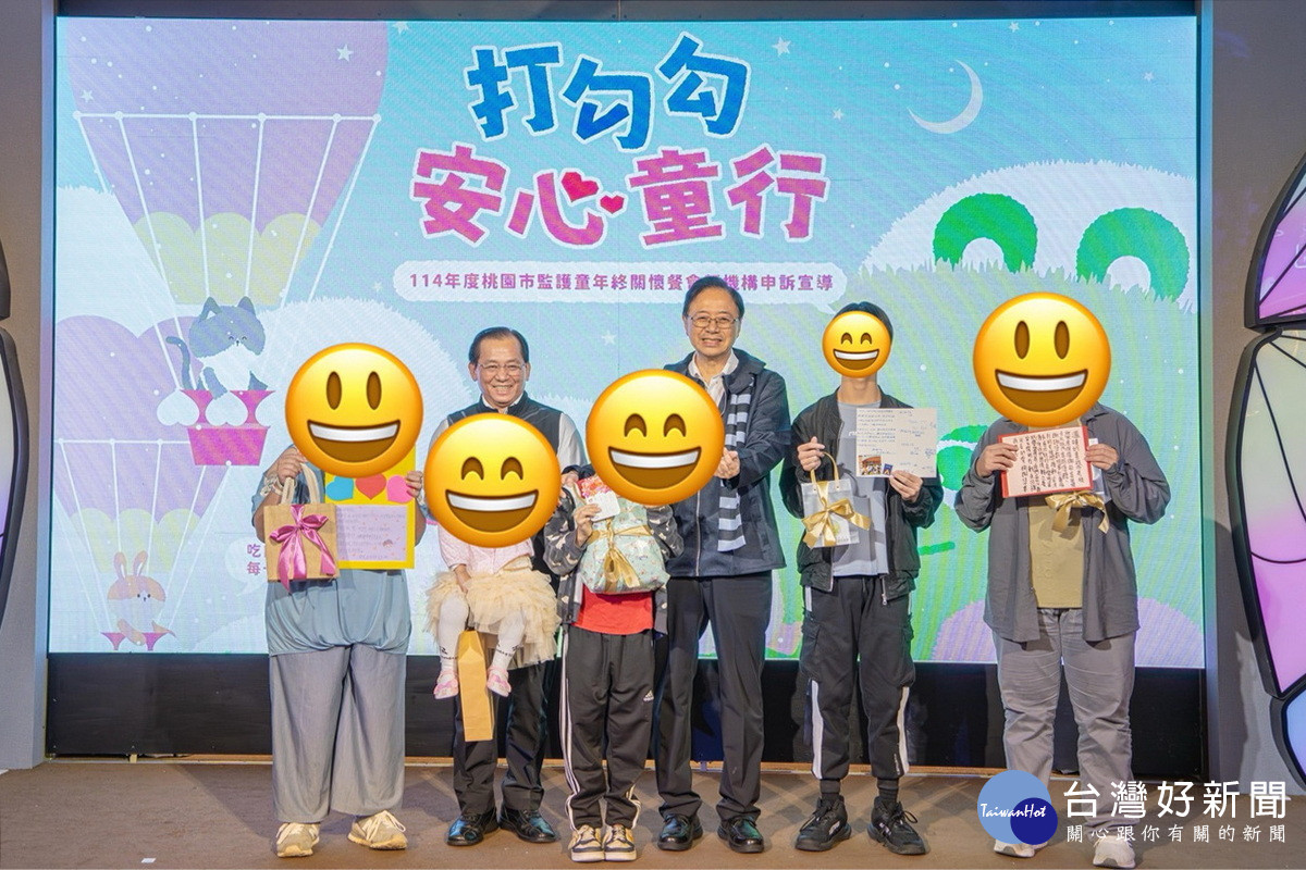 桃園市政府9日晚間於Amour阿沐婚宴會館舉辦「114年度桃園市監護童年終關懷餐會」活動。今年度結合桃園推廣國際兒童人權公約的Q萌大使形象,以「打勾勾 安心童行」為主題,象徵市府與孩子們的承諾一起向前、安心同行,張善政市長特地以造型扮裝現身,與兒少一同度過充滿歡笑與溫馨的夜晚。