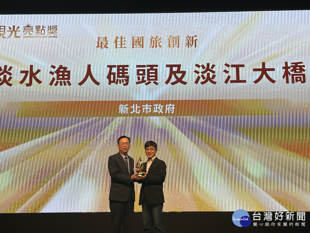 交通部觀光署今(11)日公布「第二屆觀光100亮點」得獎名單,新北市表現亮眼,共有三處景點入選全臺百大觀光亮點,分別為「淡水漁人碼頭及淡江大橋」、「三貂嶺猴硐百年聚落」及「新北市美術館」。其中,「淡水漁人碼頭及淡江大橋」更榮獲本屆「最佳國旅創新獎」,展現新北市結合創新工程美學與觀光旅遊的成果。