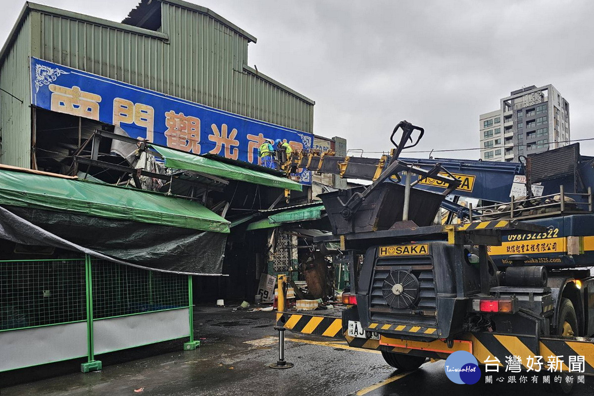 桃園區南門市場拆除工程持續推進,南昌西街頂棚開始拆除。