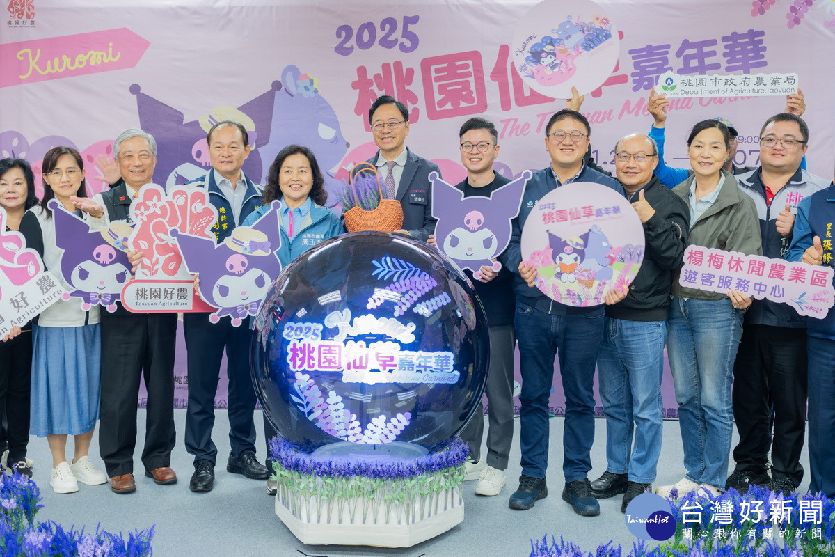 「2025桃園仙草嘉年華宣告記者會」18日下午假市府1樓川堂舉行,桃園市長張善政與會表示,備受市民期待的仙草嘉年華將自11月22日起至12月7日,在楊梅休閒農業區盛大登場。今(114)年活動以「花開紫境.相遇楊梅」為主題,共規劃2公頃的紫色仙草花及2.1公頃的波斯菊花田,並結合三麗鷗人氣角色「酷洛米」,打造夢幻花海與萌趣打卡點,非常適合親子同遊,感受桃園紫色花海的浪漫魅力。