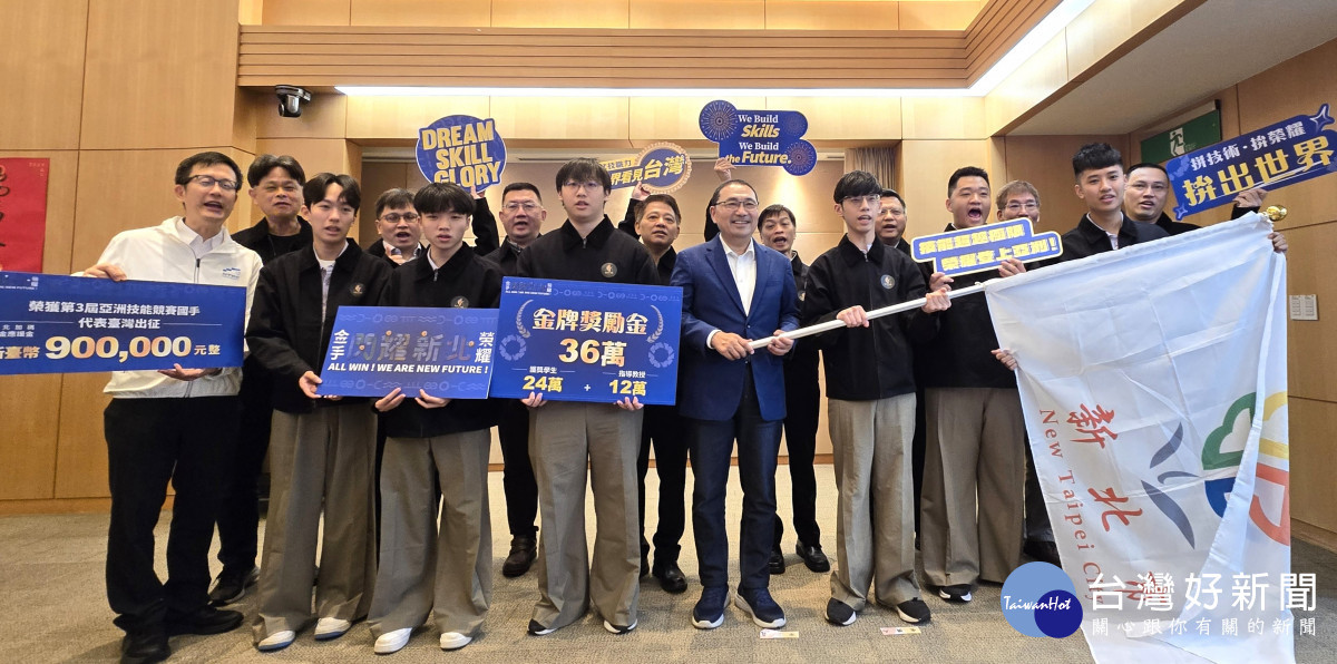 亞洲最高規格的青年技能盛會第3屆亞洲技能競賽,將於11月27日至29日在南港展覽館登場,匯聚30國、近400位技職頂尖選手同場較勁。侯友宜市長今(19)日於市政會議親自授旗,勉勵新北市6位正取國手「臺灣隊」戰袍出征國際,期勉選手發揮最佳實力、勇於挑戰,把金牌留在台灣。