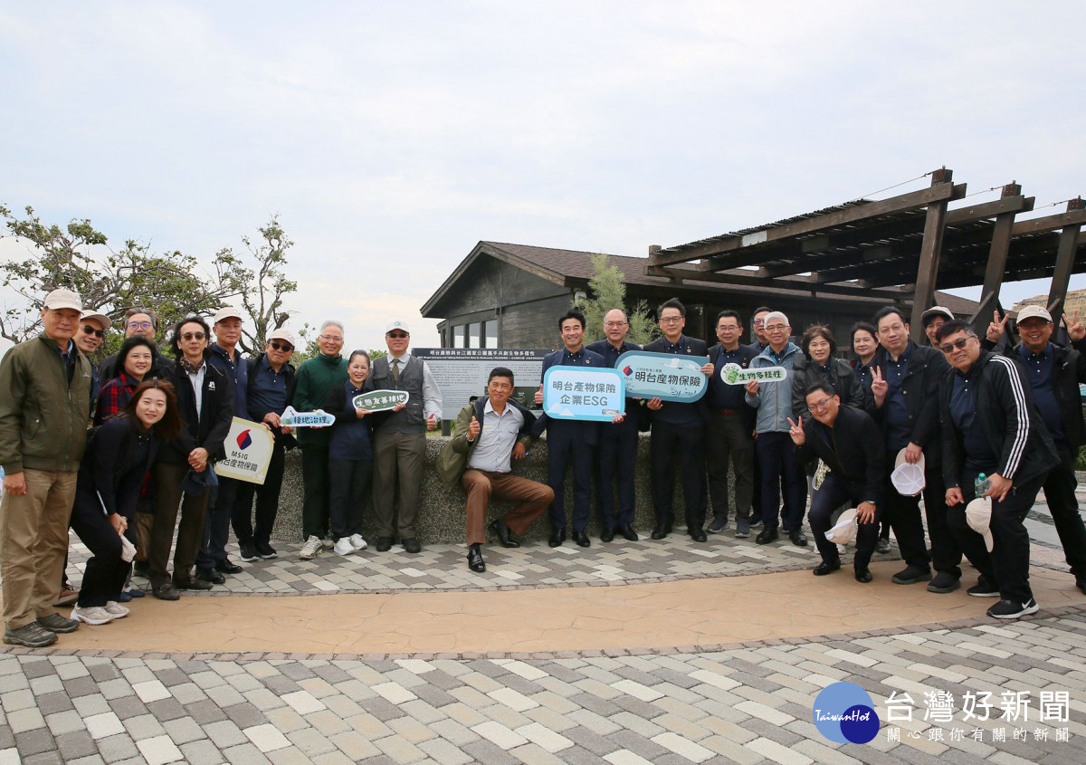 明台產物保險公司與台江國家公園管理處20日,於七股區十份黑面琵鷺保護區第1賞鳥亭前舉辦攜手共創生物多樣性合作標誌揭牌儀式,由明台產險矢持健一郎董事長率經營主管團隊,與台江處長張順發共同拉開紅布幔,為公私協力守護國家公園寶貴資源合作揭開序幕。