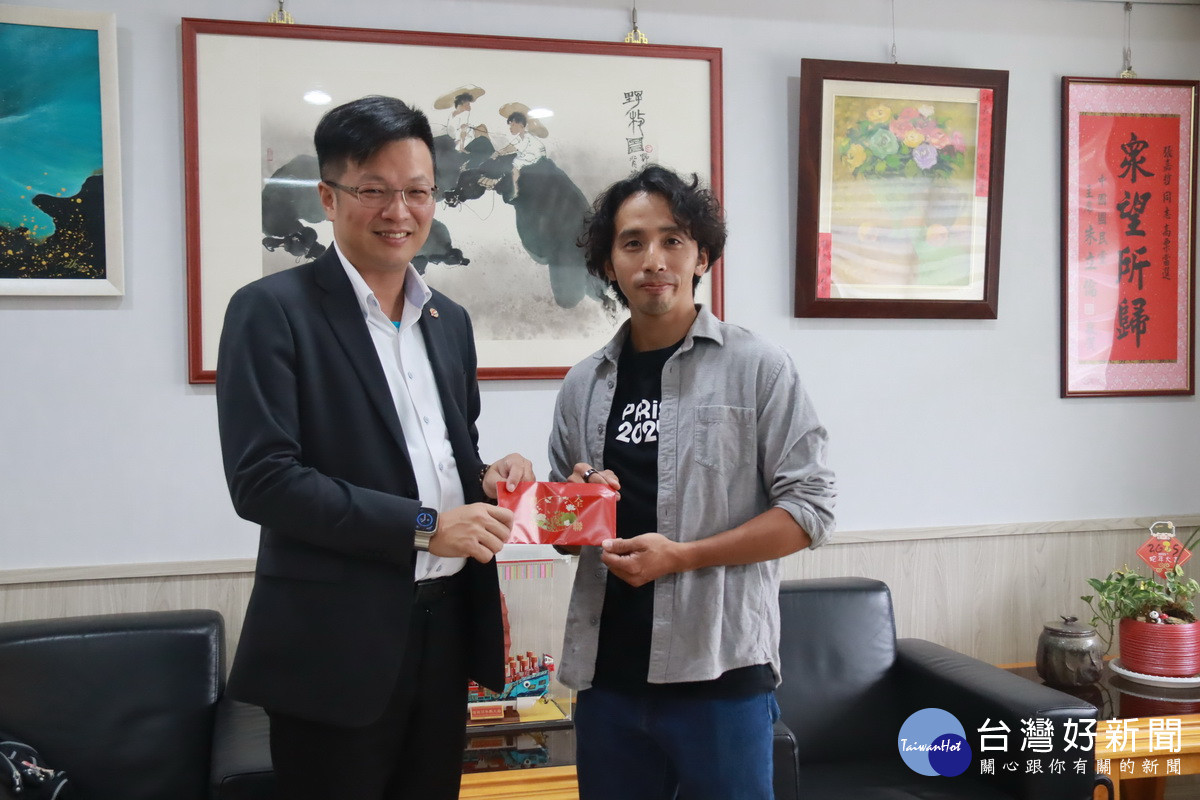 南投市長張嘉哲20日下午特別與全國運動會自由車銅牌選手盧紹軒相見歡,暢談自由車運動未來發展性,張市長希望盧紹軒能撥空回南投教導學童自由車運動,培育未來之星。