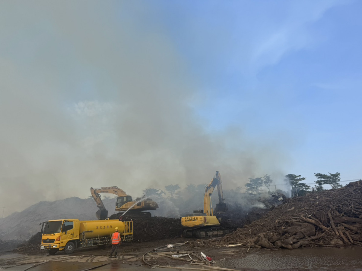 台南後壁區烏樹林風災廢棄物暫置區昨晚發生火警,環保局獲報後第一時間啟動應變措施,調派6台挖土機、8台水車等機具趕赴現場與消防局齊力滅火,讓火勢在最快時間內獲得控制,同時也派移動式空氣品質監測車至下風處監測空氣品質,提醒民眾做好防護措施。
