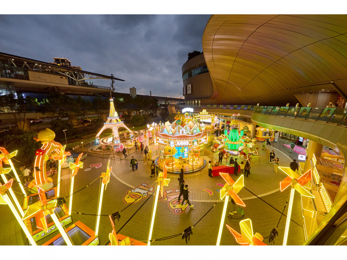 Global Mall桃園A19精心打造300坪主題遊樂場,入口處建置B.Duck城市樂園設有六大遊樂設及四大遊戲攤位,從旋轉木馬、軌道列車、彈跳床等人氣體驗區,到打氣球、擲骰子與沙包投手等趣味挑戰,一次滿足大小朋友的遊玩願望,享受沉浸在洋溢歡笑與童趣的夢幻國度,成為今年造訪桃園市必須朝聖的新景點!