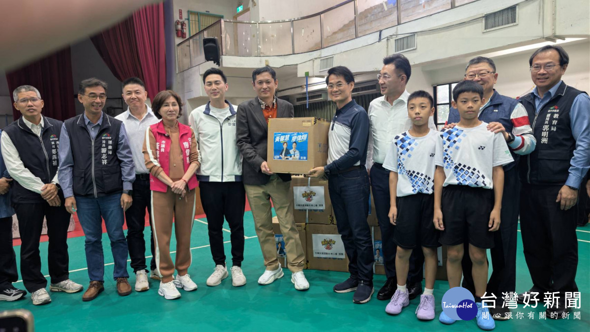 台中市大鵬國小羽球隊戰功彪炳!甫於台中市長盃羽球錦標賽橫掃6金5銀9銅,不僅包辦六年級男團與三年級女團冠軍,更是全台中表現最耀眼的國小隊伍。這群羽球小將將於12月3日南下屏東,出征「全國國小盃羽球錦標賽」。為緩解球隊龐大的訓練消耗,運彩公會理事長何昱奇今(26)日聯手立法委員廖偉翔,特別捐贈價值15萬元的羽球共10箱(3,600顆),為選手們補足「彈藥」,期許大鵬國小延續市長盃氣勢,在全國賽場上再奪金盃。