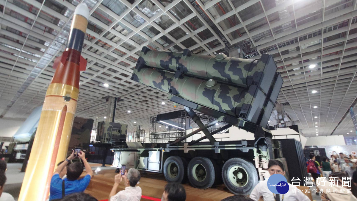 中科院在「2025台北國際航太暨國防工業展」上展出天弓四型「強弓飛彈」系統。(圖/資料照片,圖源:台灣好新聞編輯部拍攝)