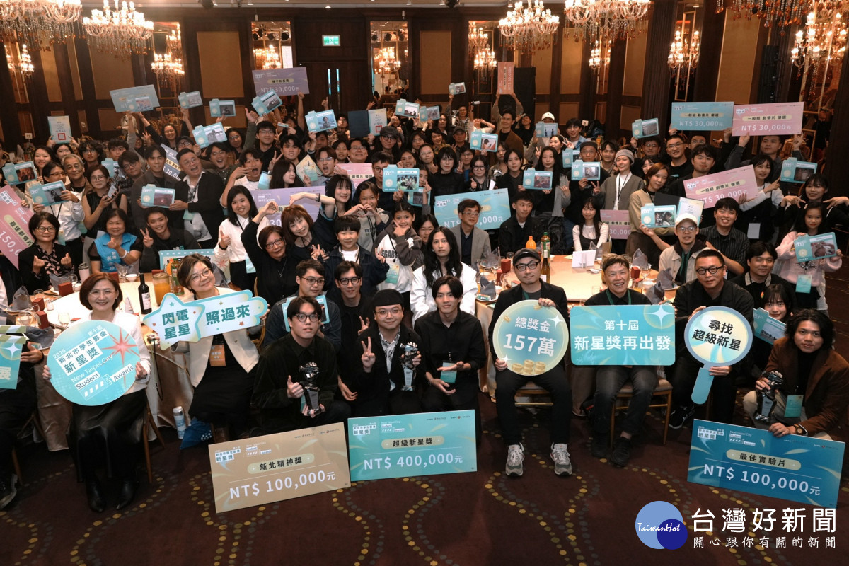 「2025新北市學生影像新星獎」今(29)日舉行頒獎典禮,正式揭曉本屆25部獲獎作品。活動邁入第十年,今年共有274部作品參賽,展現新世代影像創作的澎湃能量。「超級新星獎」由國立臺灣藝術大學《青春的回擊殺球》,獲得最高榮譽與40萬元獎金;國立臺灣藝術大學作品《良夜之歌》則拿下「新北精神獎」。