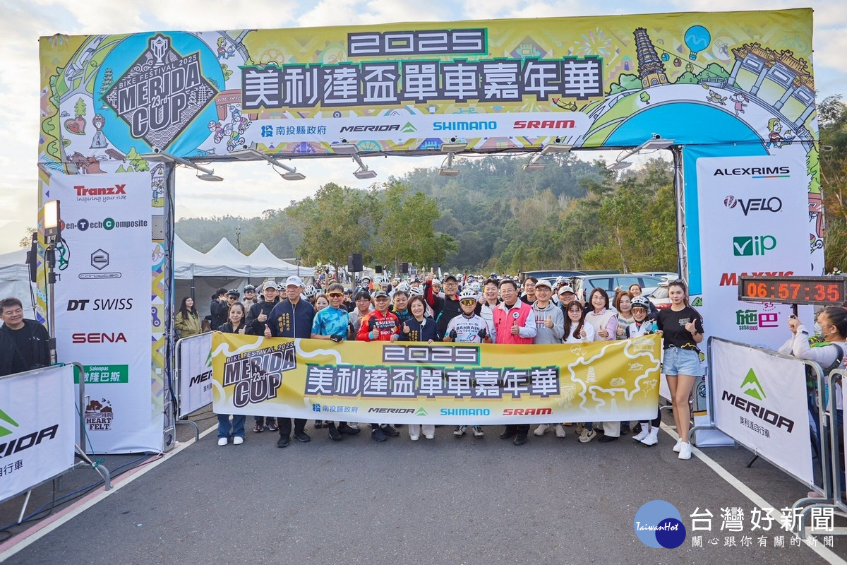 第23屆「2025美利達盃單車嘉年華」於11月29日熱鬧舉行,年末單車盛宴吸引來自全國各地近三千名車友齊聚日月潭,享受路線上的湖光山色。今年更邀請到全錦賽雙料冠軍杜志濠、「粉紅小鋼砲」黃亭茵、「美利達-諾飛客車隊」(Merida-Novatec)巫帛宏、彭源堂、熊凱文、徐暄評及、單車阿賢李冠賢等美利達健將,與車友一同馳騁全球十大最美自行車道。清晨於向山遊客中心,眾多嘉賓共同為活動揭幕,美利達總經理曾上原表示,希望所有車友盡情享受騎乘、美食與交流的樂趣;南投縣政府機要秘書黃馨瑩也祝福大家一路順利,沿路享受日月潭的美景美食。