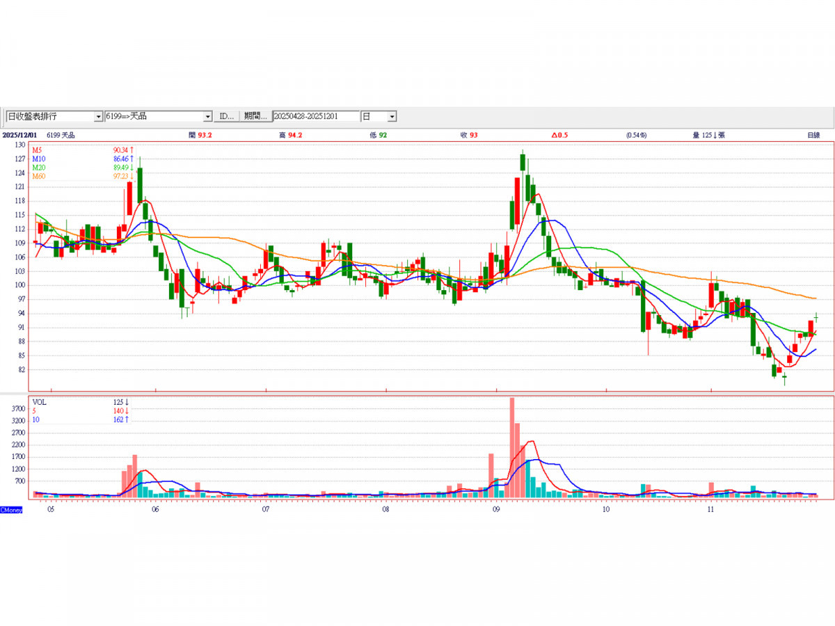 天品近年營運動能強勢回升,2025年前三季累計營收達1.37億元,年增率達100.01%,主要係受惠於生命事業、AI事業雙主軸成長所致,尤其在AI事業方面,AI伺服器水冷散熱系統新機種之相關清洗訂單持續挹注,來自國際雲端、高效能運算(HPC)等供應鏈的伺服器、BBU等客戶需求穩定放量,堆疊第三季營收來自AI清洗業務的營收明顯較第二季成長約166.87%、續創高峰,顯示AI清洗科技業務正成為公司營運成長的關鍵支柱。