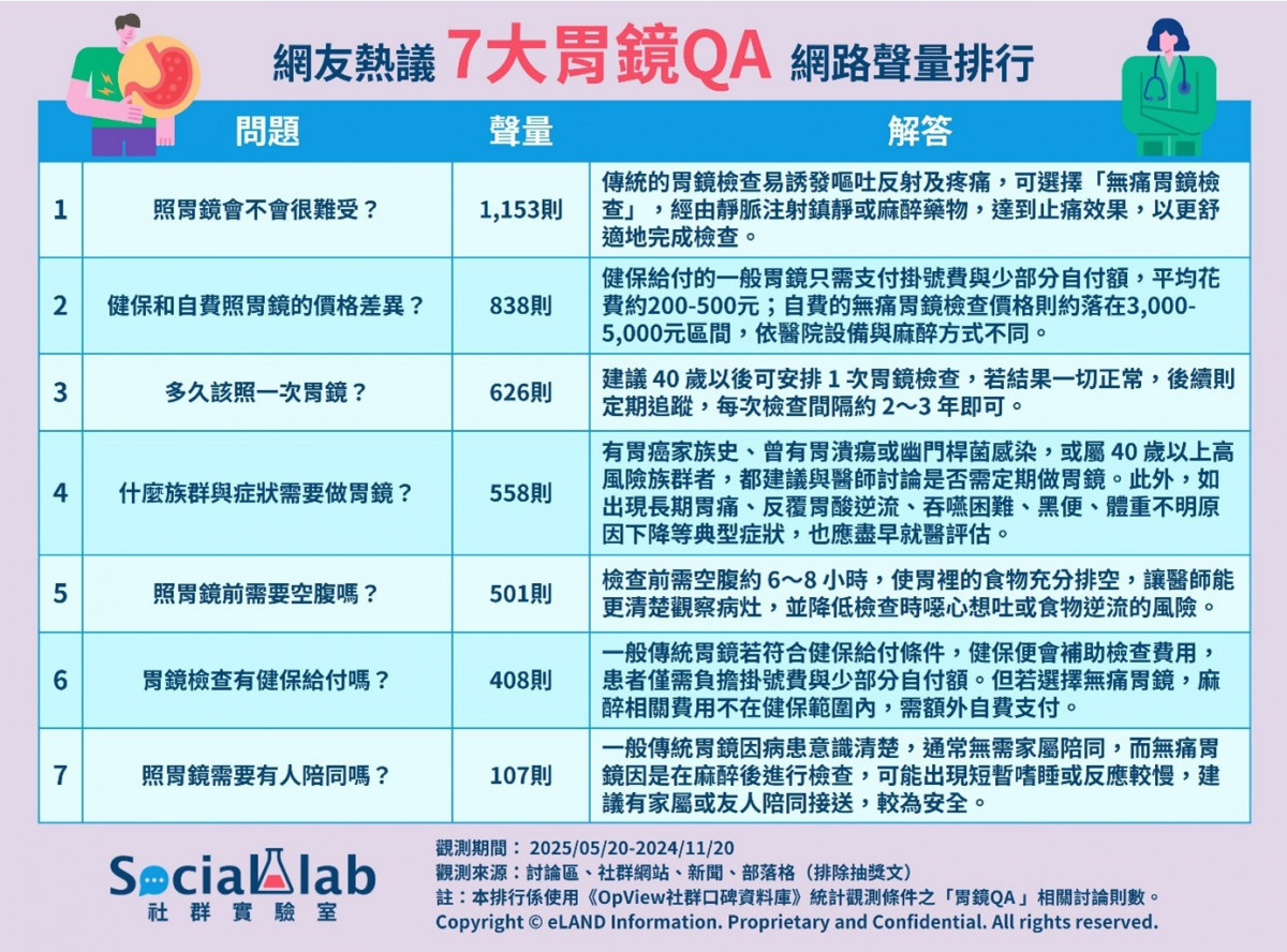 觀察近六個月網友針對「胃鏡」的相關話題討論,最多人關心的便是「照胃鏡會不會很難受?」許多民眾擔心傳統胃鏡檢查過程會出現噁心、嘔吐等強烈不適。