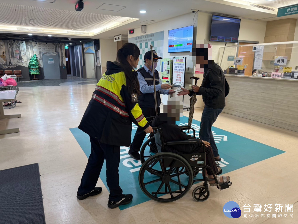 兩名員警察覺男子神情慌張立刻上前關切,男子(宋男、40歲)向警方說,稍早在家中發現70歲的母親不慎跌倒,導致傷及後腦勺,頭部有部分出血。然因事發突然且情況危急,宋男驚慌之下一時忘記可以撥打119由救護車送醫,就攙扶著母親步行至巷口,想要招攔計程車自行前往醫院急診。