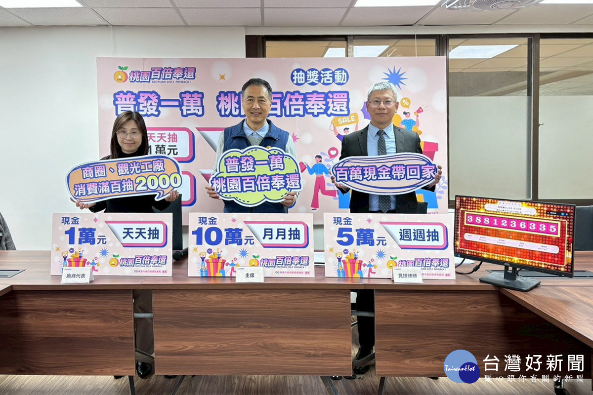 「普發一萬 桃園百倍奉還」活動將持續至12月31日,凡於活動期間登記地址在桃園市的店家消費之有效發票,於115年1月7日前完成登錄,皆有機會將百萬現金帶回家。目前活動效益顯著,經發局也持續廣邀桃園在地的觀光工廠、商圈協會及企業加入成為特約店家,一同搶攻歲末商機,詳細招募資訊與活動辦法,請密切關注「普發一萬 桃園百倍奉還」官方網站。https://enjoytaoyuan.tycg.gov.tw/index.html