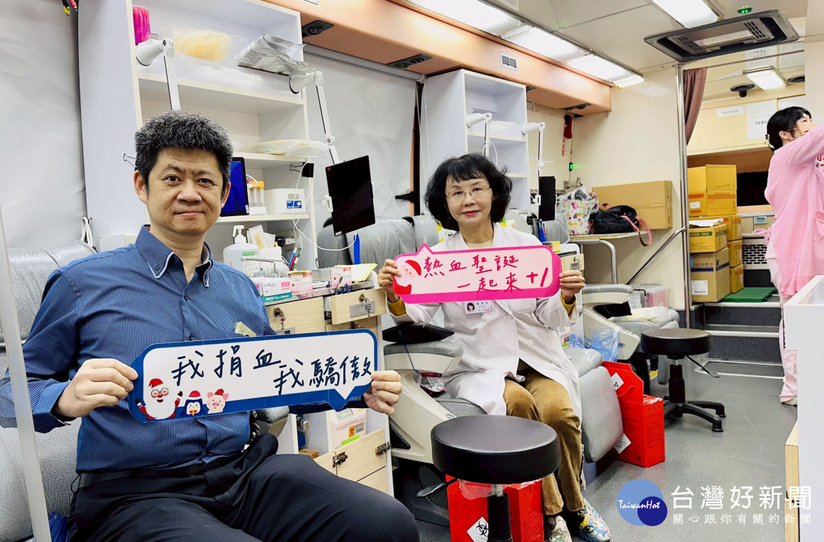 鄭雅敏院長親自到場響應,並向每位捐血者表達誠摯感謝。鄭院長表示,歲末時節最有力量的祝福,莫過於能以一袋熱血延續生命,是極具意義的聖誕禮物。