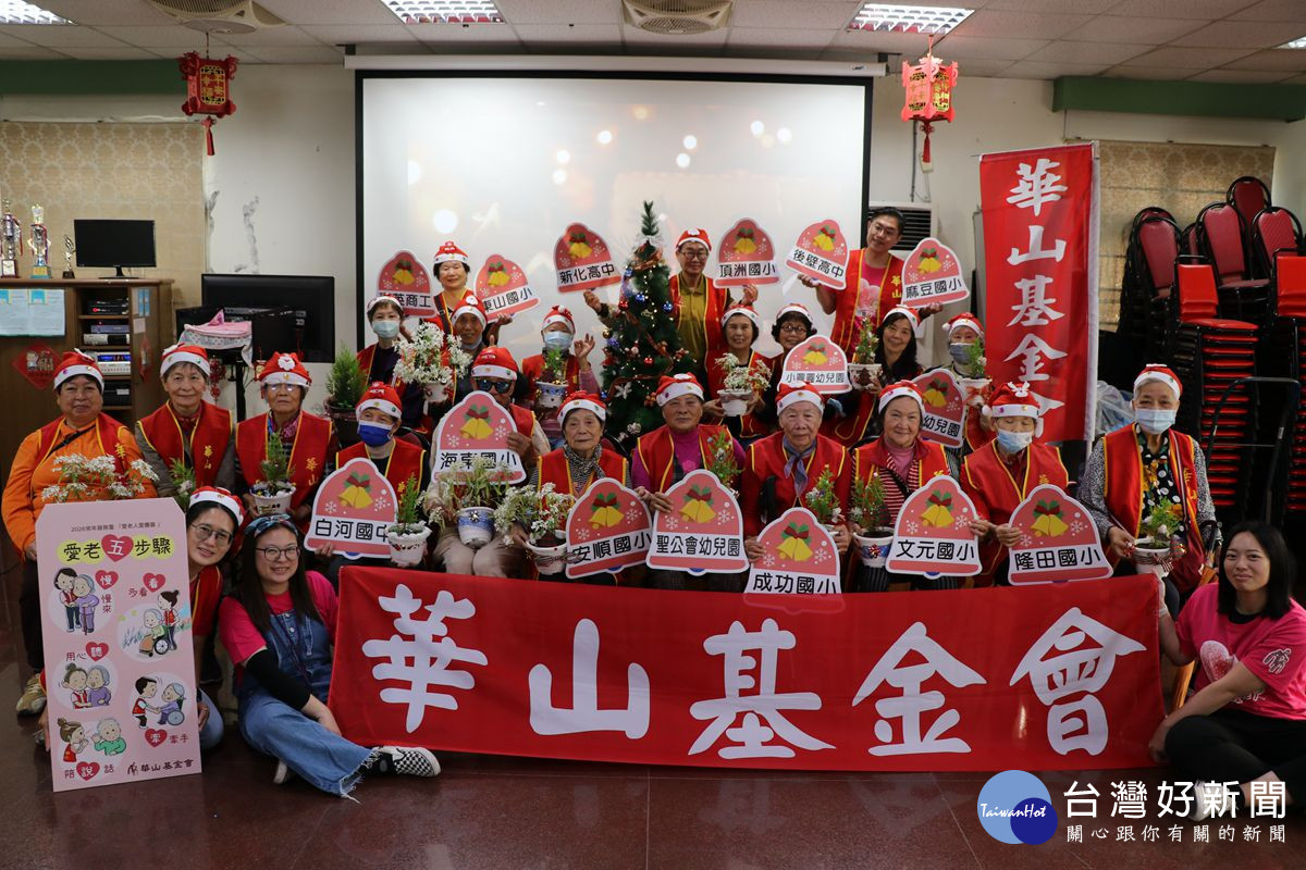 2025年即將結束,華山基金會正如火如荼進行「2026年常年服務暨第23屆愛老人愛團圓」公益計畫,募集新一年的三失(失能、失智、失依)老人免費到宅服務。12月10日於台南市東區大福里活動中心登場,華山基金會台南A區邀請大台南地區長期以「愛心助老袋」支持老人服務的近20間學校代表、而勇幼兒園,與弱勢長輩共同製作聖誕園藝植栽。