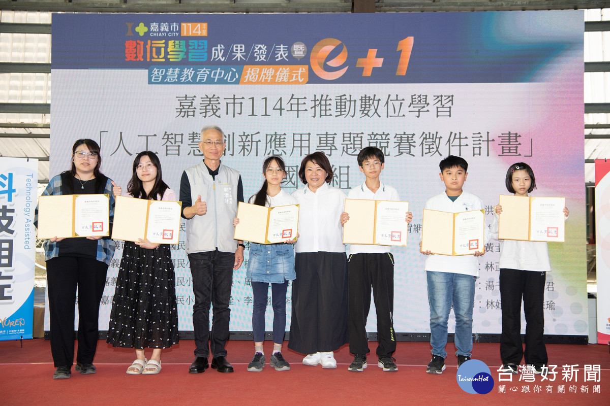嘉義市政府今(10)日在智慧教育中心舉辦「114年度數位學習e+1成果發表暨智慧教育中心揭牌儀式」,市長黃敏惠與多位議員出席見證,嘉義市教育政策從「數位教學應用」正式升級為「智慧教育系統建置」,並由黃敏惠頒發全國績優獎項。