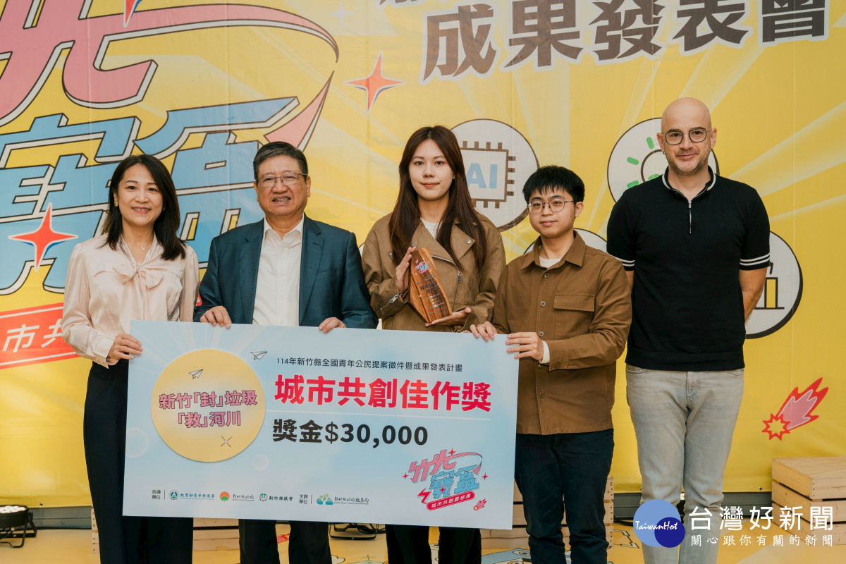 本次競賽由教育部青年發展署擔任指導單位,並以「公共參與培力」與「民主實踐」為主軸,共吸引全國計 23 組青年團隊報名,提案內容涵蓋環境永續、社會公益、都市發展等面向。經決選後,由【風城智遊】與【竹青AI特攻隊】獲得「城市共創優秀獎」,【新竹「封」垃圾 救「河川」】、【她的所在】與【安娜牧羊人行銷有限公司】獲得「城市共創佳作獎」,縣府並發出高達 21 萬元總獎金,勉勵青年展現跨領域創新與行動能力。