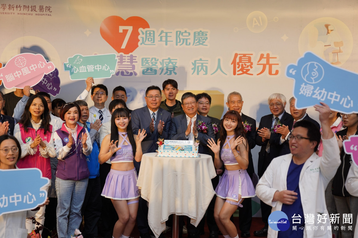 中醫大新竹附醫舉辦七周年院慶,主題為「智慧醫療,病人優先」。新竹縣長楊文科率領縣府團隊,院長陳自諒,前縣長邱鏡淳、健保署北區業務組長張温温及議員,鄉鎮市長,醫界,學界、企業界,法界等貴賓共同出席,一起切蛋糕慶生。