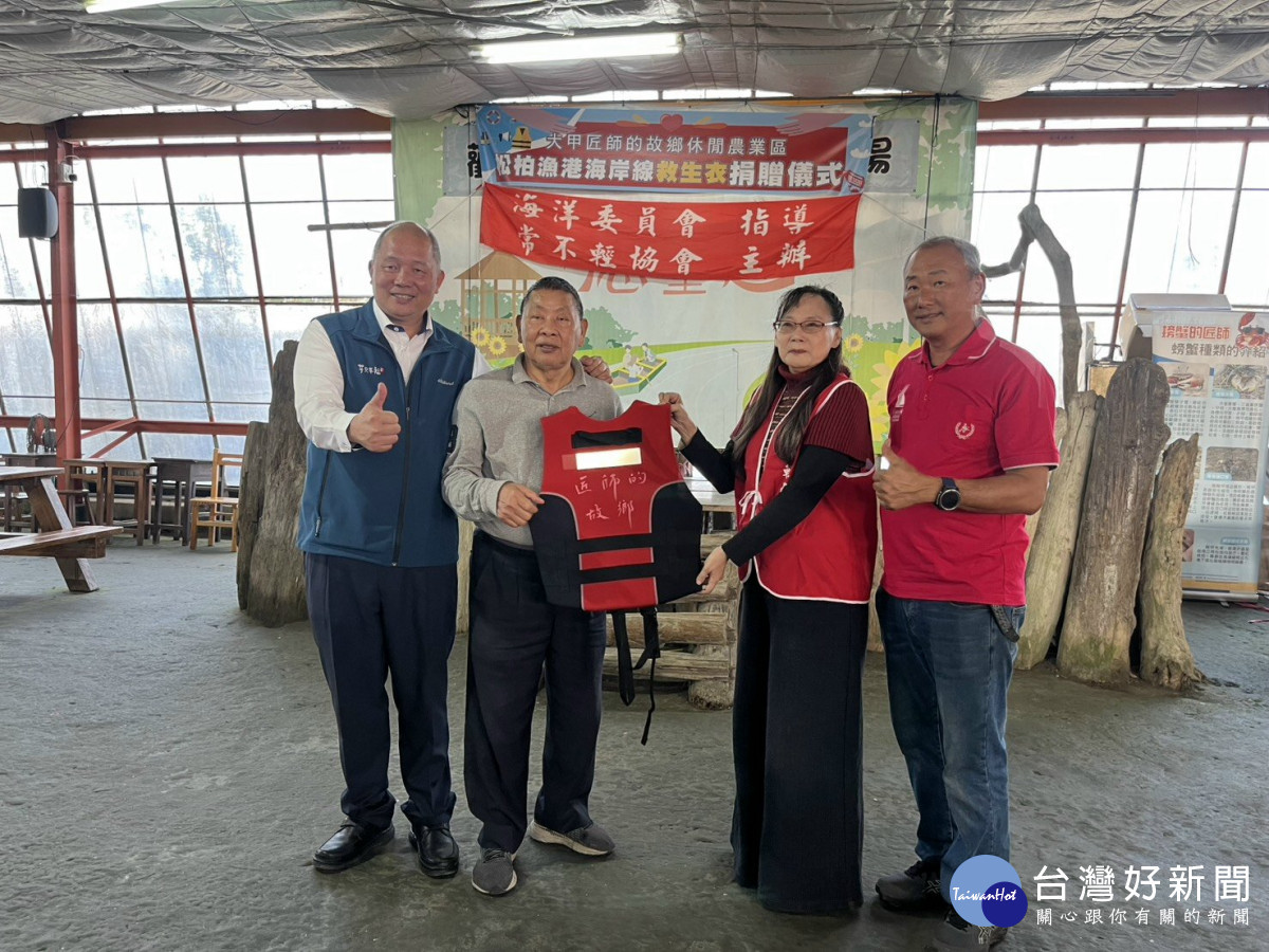 大甲區匠師的故鄉休閒農業區產業促進協會攜手臺中市大甲區農會、大甲中央扶輪社及甲安埔鐵馬扶輪社區服務團,共同響應中華民國常不輕協會長年推動的善行義舉,昨日在葵海休閒農場舉辦「救生衣捐贈儀式」,正式宣布在松柏港北堤海灘建置免費救生衣借用服務站。